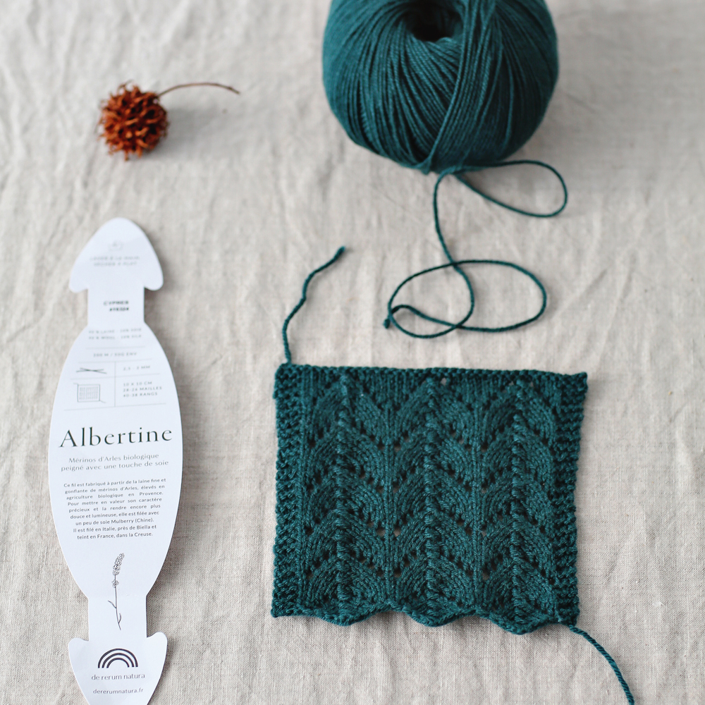 ALBERTINE 4 ply je stejně jako její větší sestra PENELOPE organická příze vyrobená ze vzácného rouna Mérinos d’Arles, ovcí chovaných s úctou v ekologickém zemědělství v Provance, ke kterému bylo přidáno morušové hedvábí. Tato jemná vlákna jsou rozčesávána, aby se zvýšila jejich jemnost a odolnost. Příze se stáčí v Itálii v oblasti Biella, barví a klubíčkuje ve Francii.