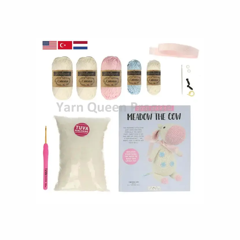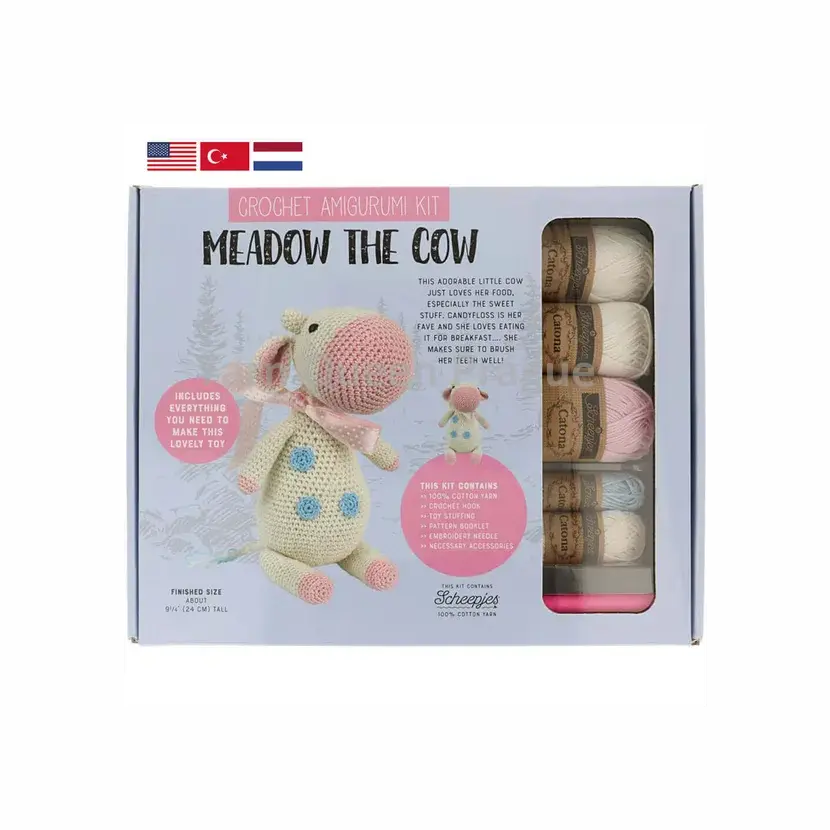 Kompletní kreativní sada pro háčkování amigurumi hraček - kravička Meadow velikost cca 24 cm - praktická, vhodná i pro začátečníky a atraktivní jako dárek.