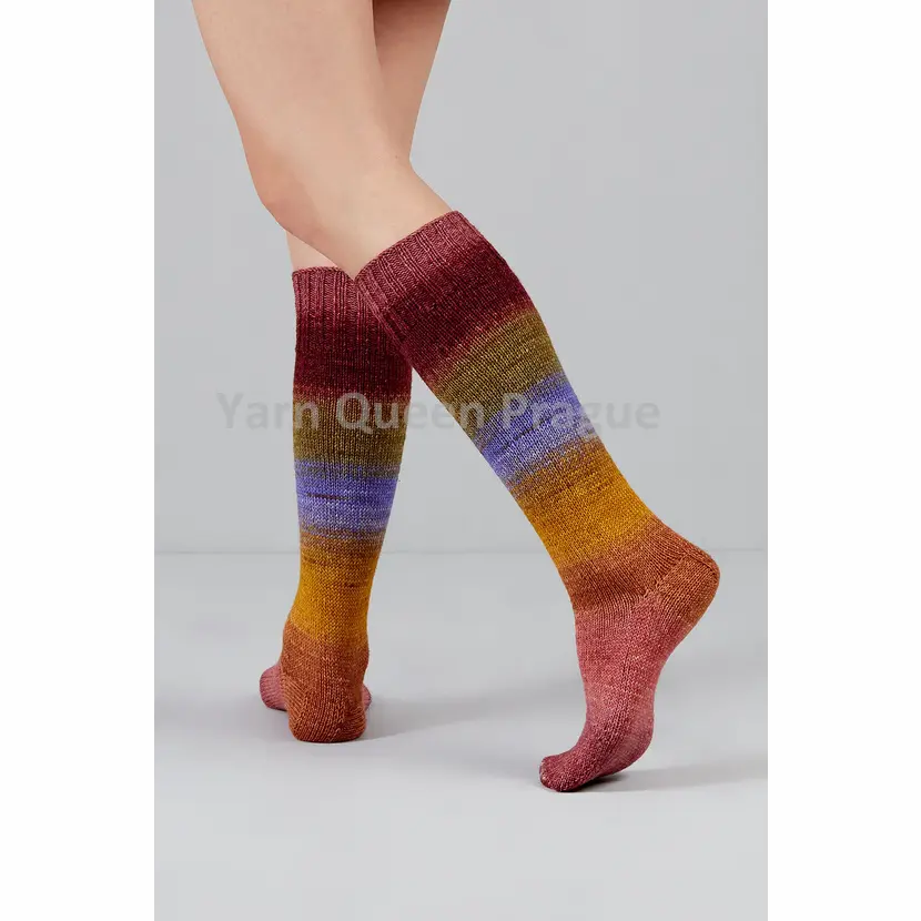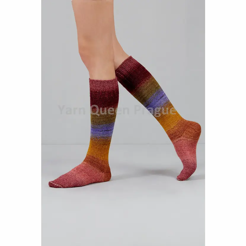 Ručně barvená Gusto Wool Echoes obsahuje 2 přadnénka po 50 gramech příze pro upletení identického páru ponožek.