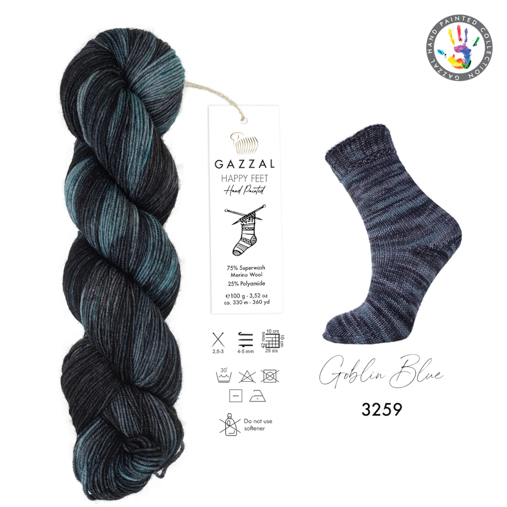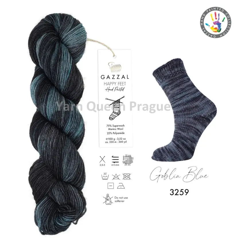Ručně barvená ponožková příze Happy Feet vytváří na ponožkách zajímavé vzory.