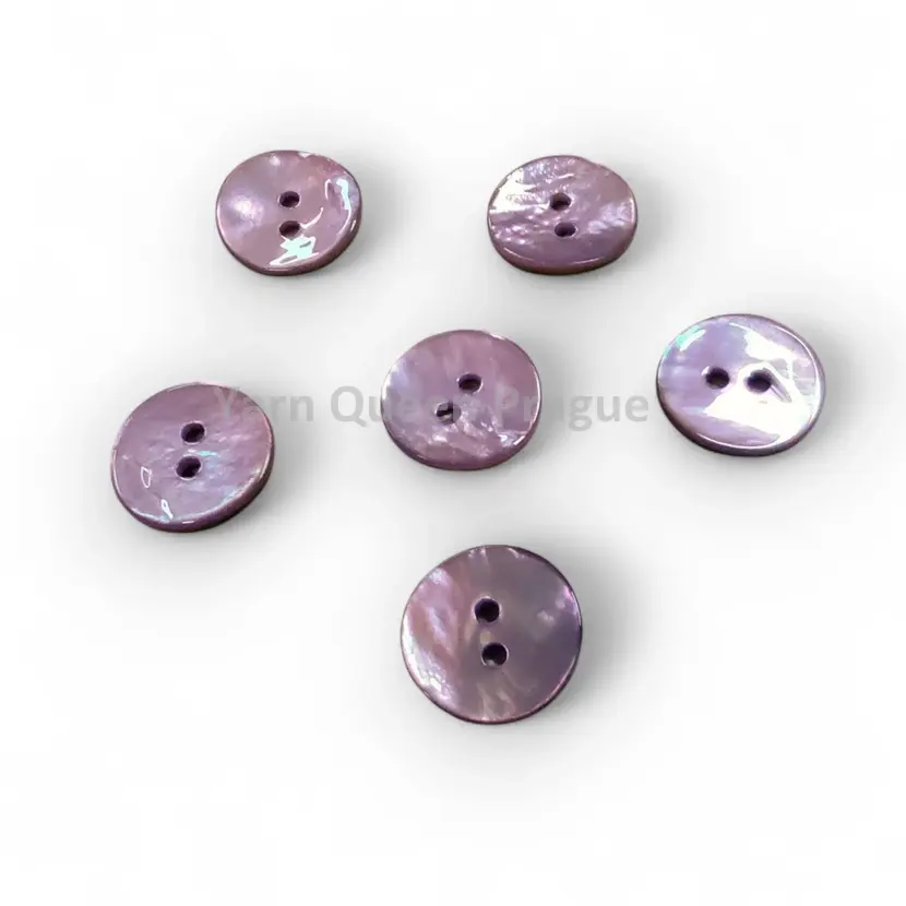 Dvoudírkový perleťový knoflík o průměru 15 mm.