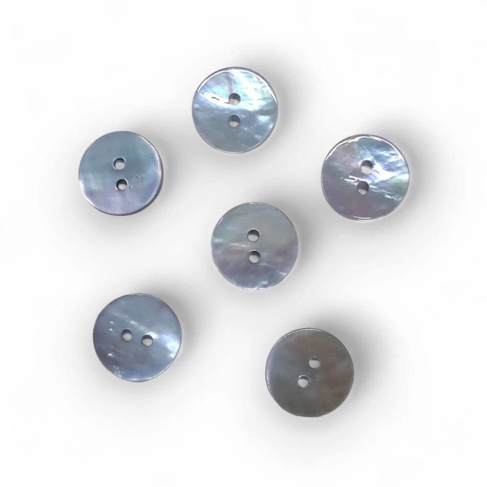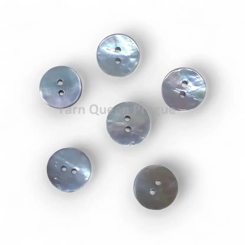 Dvoudírkový perleťový knoflík o průměru 15 mm.