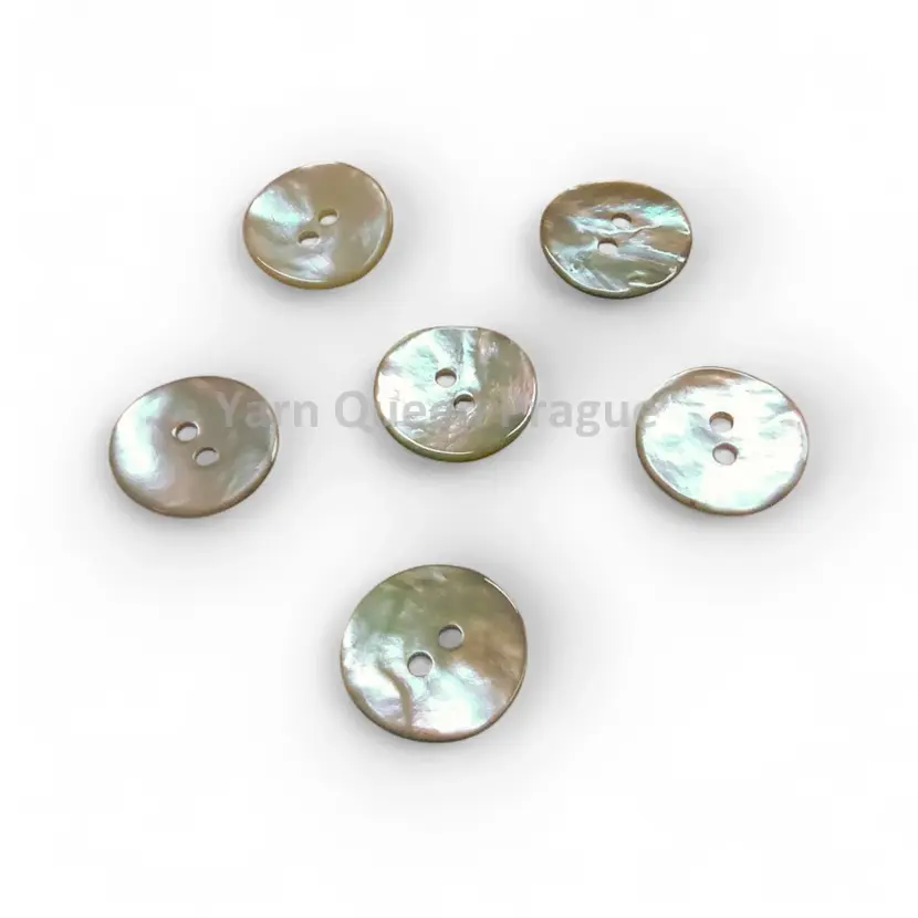 Dvoudírkový perleťový knoflík o průměru 15 mm.
