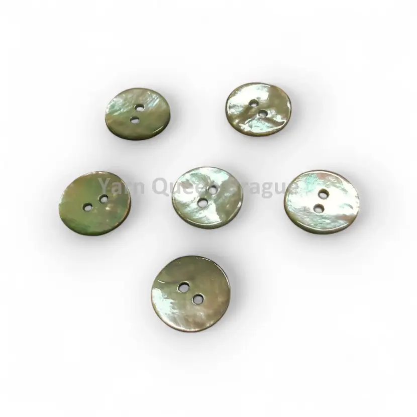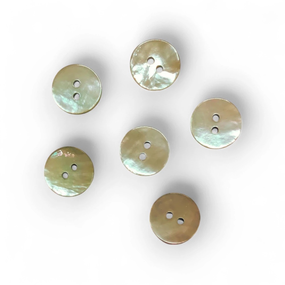 Dvoudírkový perleťový knoflík o průměru 15 mm.