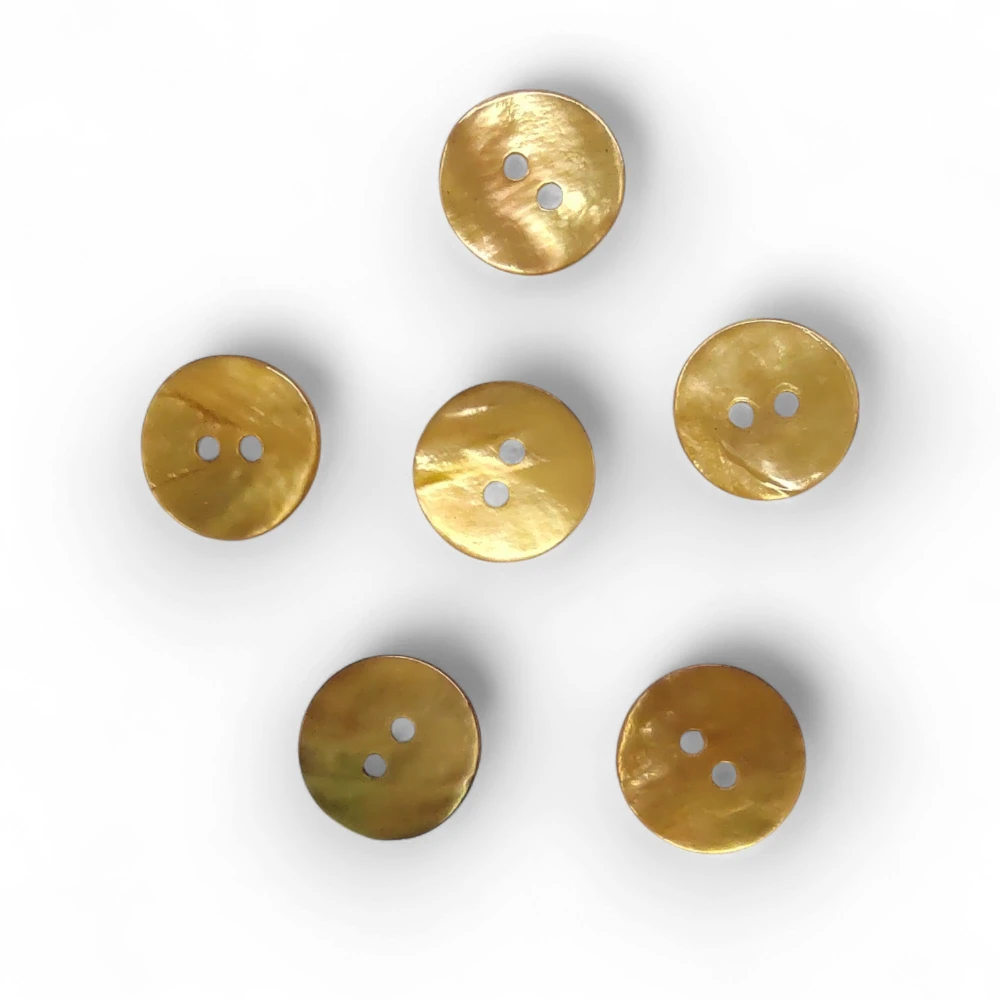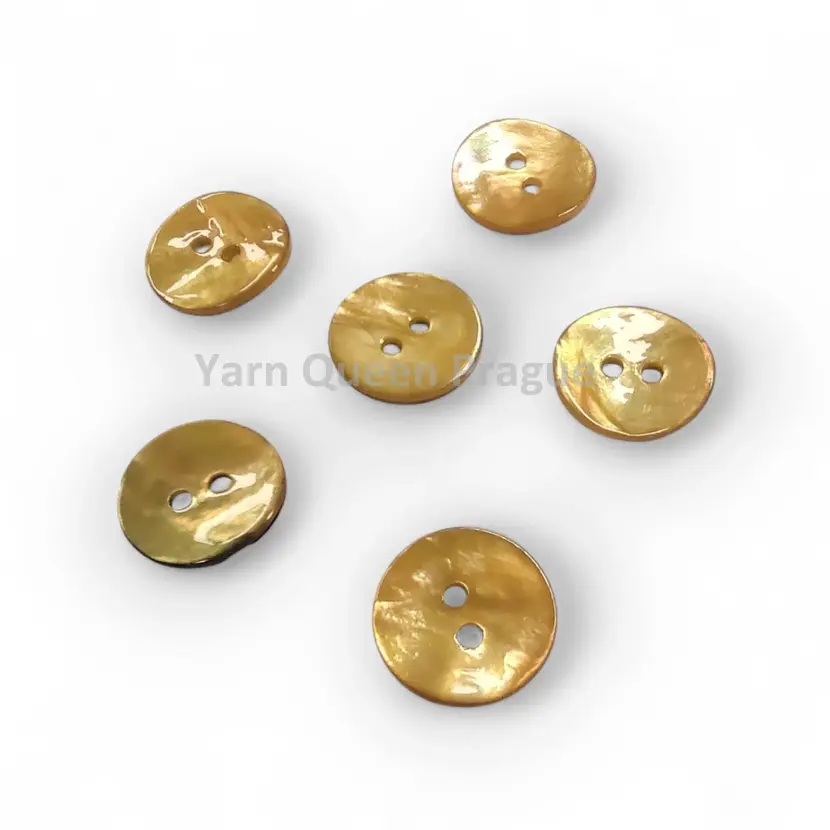 Dvoudírkový perleťový knoflík o průměru 15 mm.
