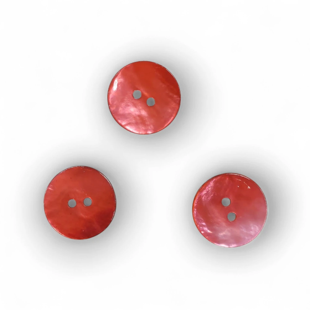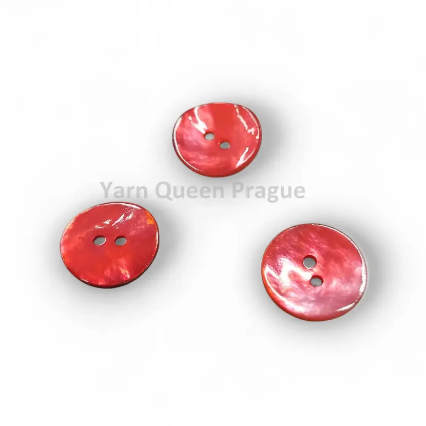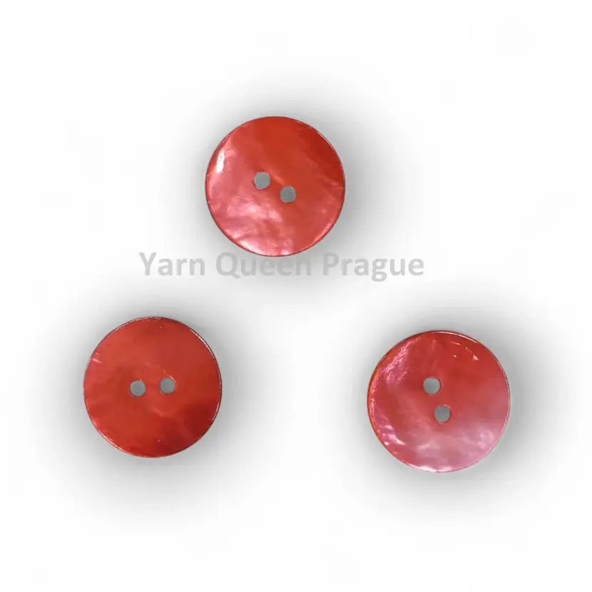 Dvoudírkový perleťový knoflík o průměru 17,5 mm.
