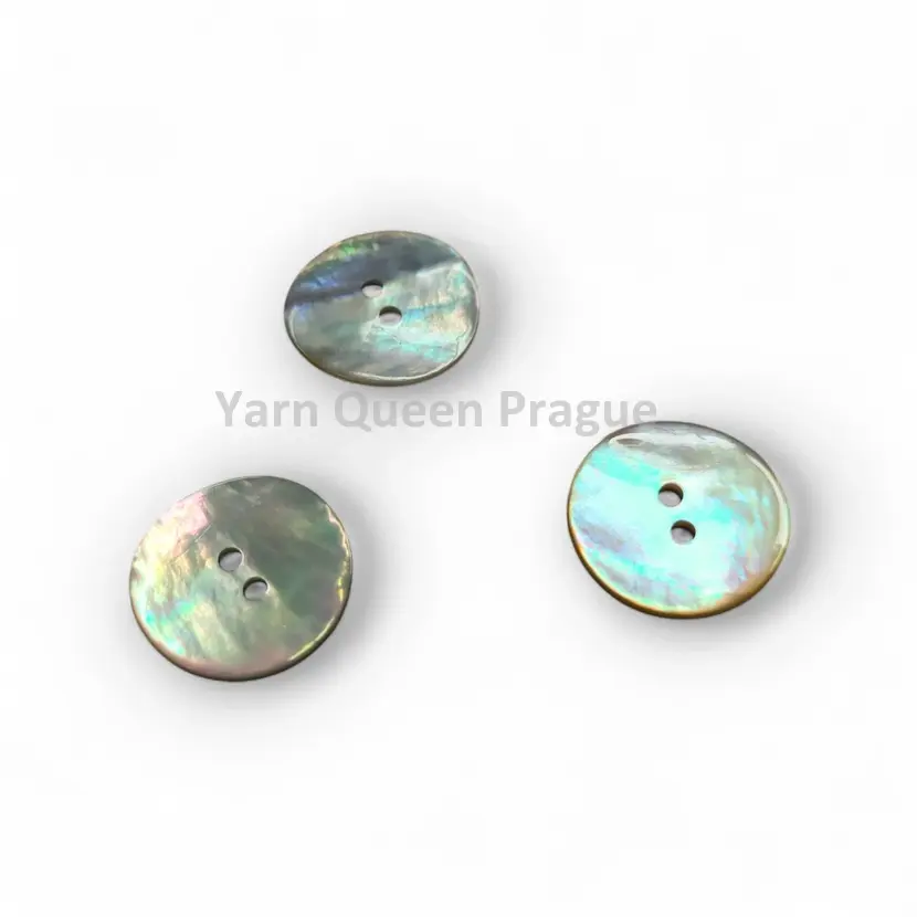 Dvoudírkový perleťový knoflík o průměru 17,5 mm.