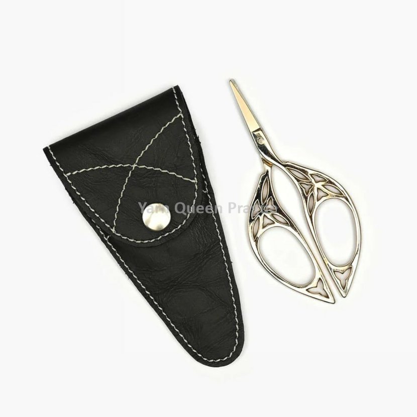 Dodávají se v ručně šitém koženém pouzdře na míru s knoflíkovým zapínáním, které chrání nůžky při skladování nebo cestování.