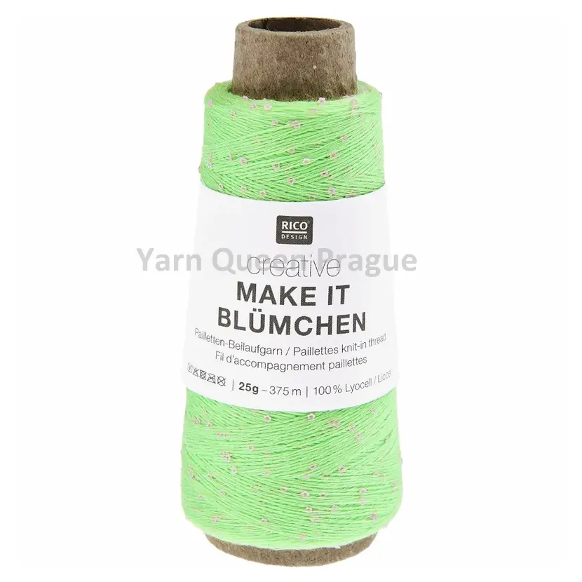 Creative Make It Blümchen je lesklá doplňková příze, která se nepoužívá samostatně, ale přidává se k jiné přízi během pletení či háčkování. Její hlavním účelem je dodat projektu elegantní a stylový vzhled díky jemným květinovým flitrům.