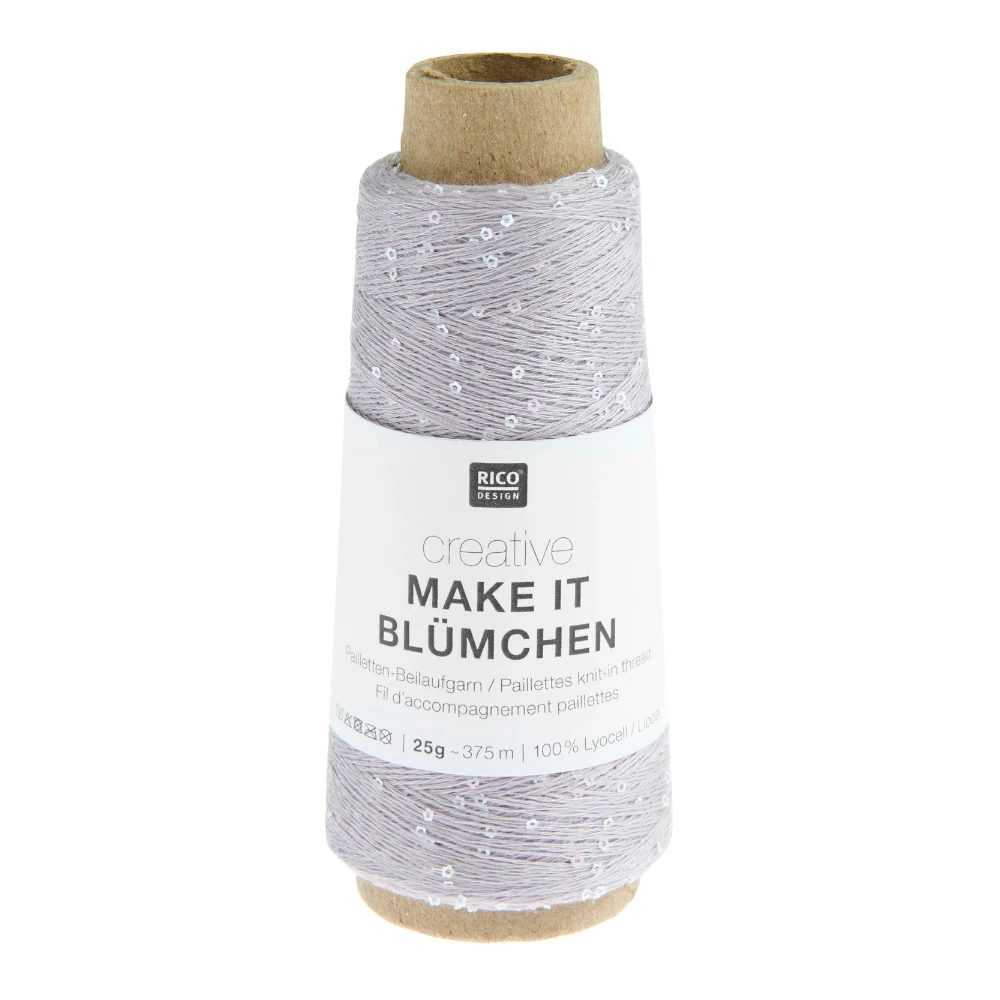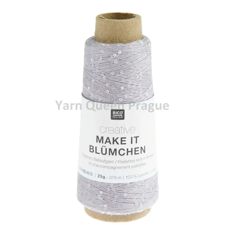 Creative Make It Blümchen je lesklá doplňková příze, která se nepoužívá samostatně, ale přidává se k jiné přízi během pletení či háčkování. Její hlavním účelem je dodat projektu elegantní a stylový vzhled díky jemným květinovým flitrům.
