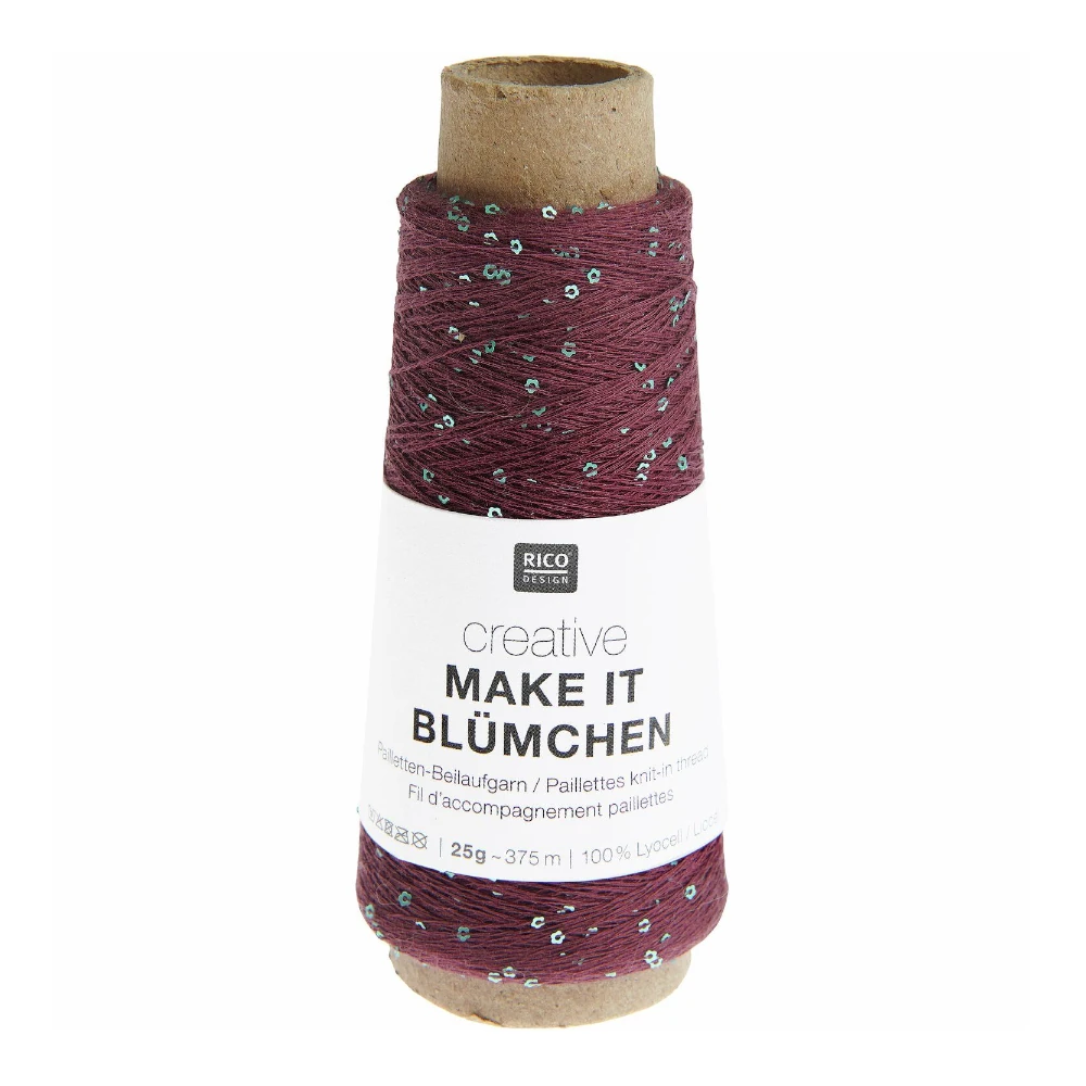 Creative Make It Blümchen je lesklá doplňková příze, která se nepoužívá samostatně, ale přidává se k jiné přízi během pletení či háčkování. Její hlavním účelem je dodat projektu elegantní a stylový vzhled díky jemným květinovým flitrům.