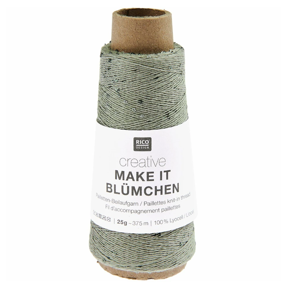 Creative Make It Blümchen je lesklá doplňková příze, která se nepoužívá samostatně, ale přidává se k jiné přízi během pletení či háčkování. Její hlavním účelem je dodat projektu elegantní a stylový vzhled díky jemným květinovým flitrům.