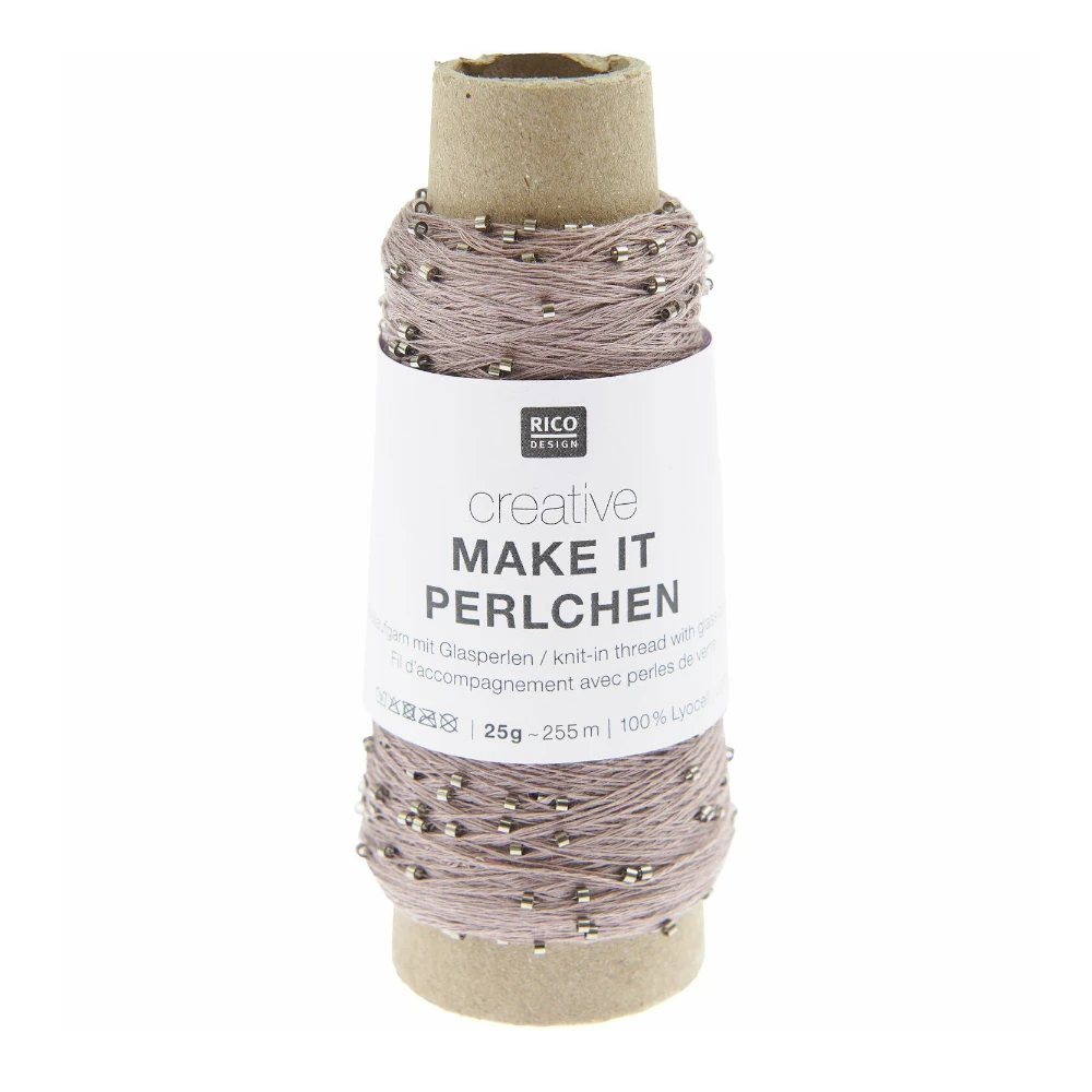 Creative Make It Perlchen je lesklá doplňková příze, která se nepoužívá samostatně, ale přidává se k jiné přízi během pletení či háčkování. Její hlavním účelem je dodat projektu elegantní a stylový vzhled díky drobným třpytivým korálkům.