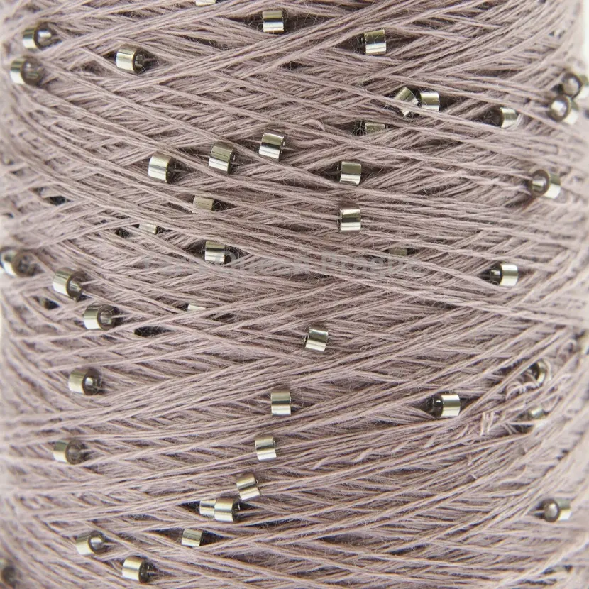 Dekorativní efekt: Příze je ozdobena skleněnými korálky, které jsou barevně sladěné s nosným vláknem.