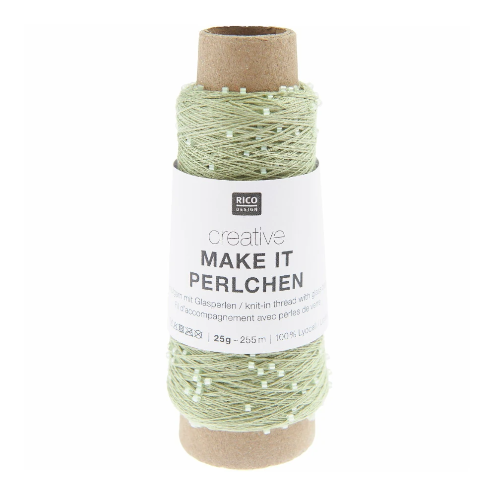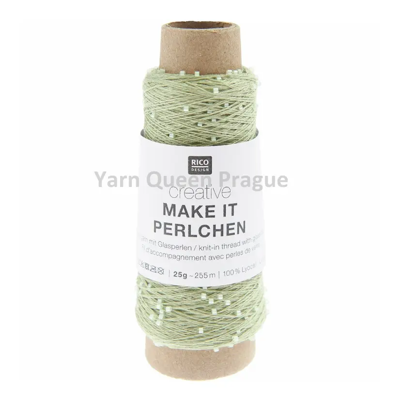 Creative Make It Perlchen je lesklá doplňková příze, která se nepoužívá samostatně, ale přidává se k jiné přízi během pletení či háčkování. Její hlavním účelem je dodat projektu elegantní a stylový vzhled díky drobným třpytivým korálkům.