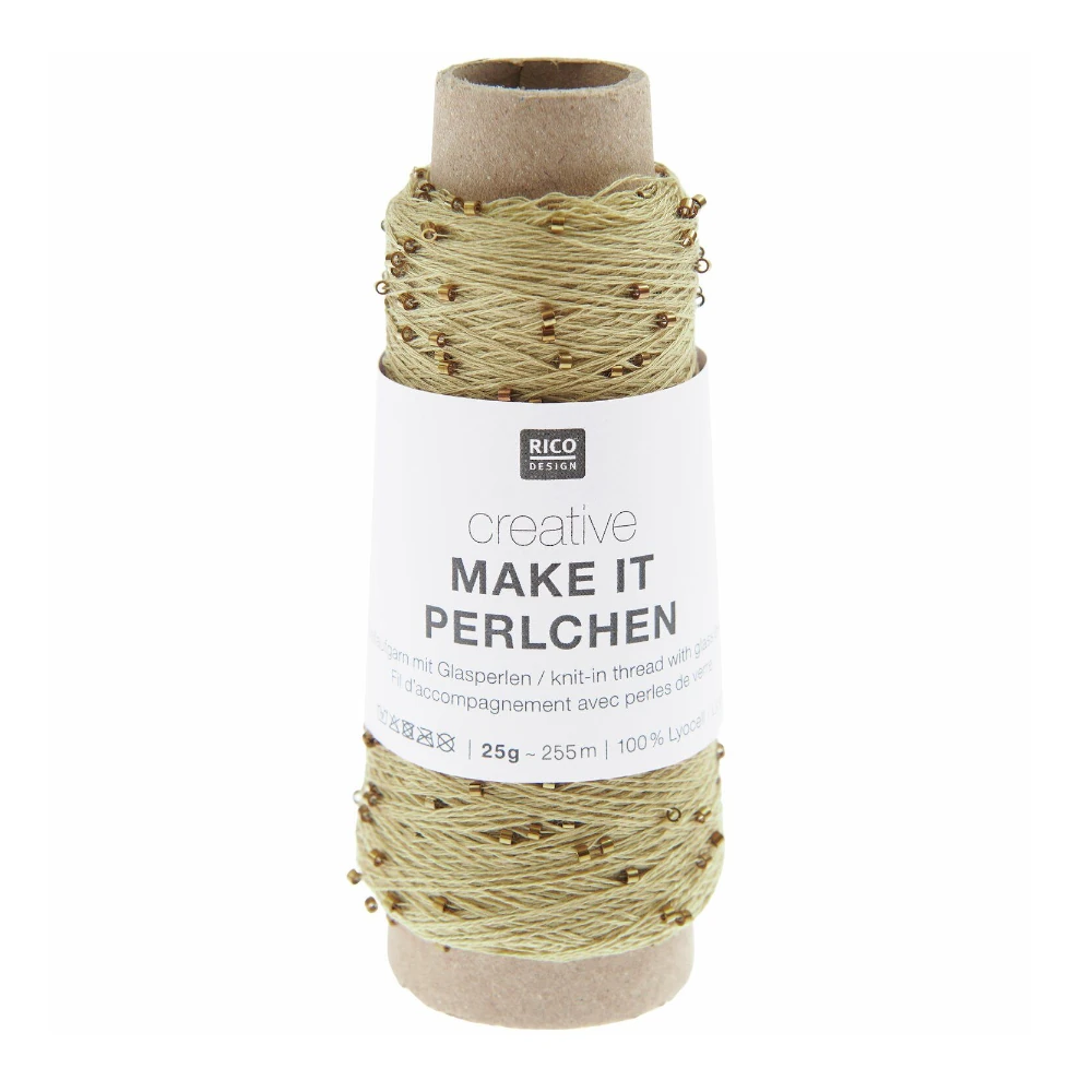 Creative Make It Perlchen je lesklá doplňková příze, která se nepoužívá samostatně, ale přidává se k jiné přízi během pletení či háčkování. Její hlavním účelem je dodat projektu elegantní a stylový vzhled díky drobným třpytivým korálkům.