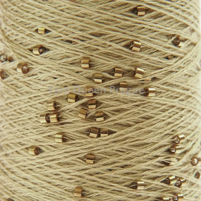 Dekorativní efekt: Příze je ozdobena skleněnými korálky, které jsou barevně sladěné s nosným vláknem.