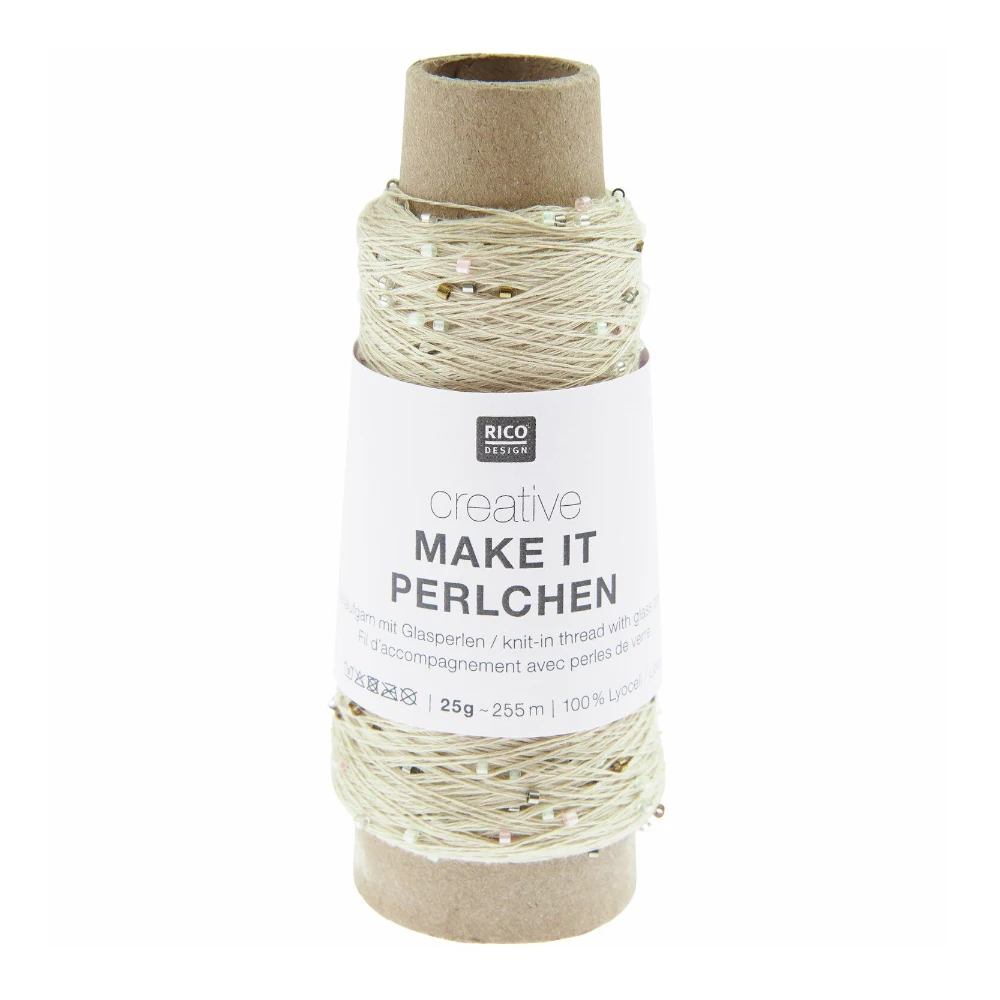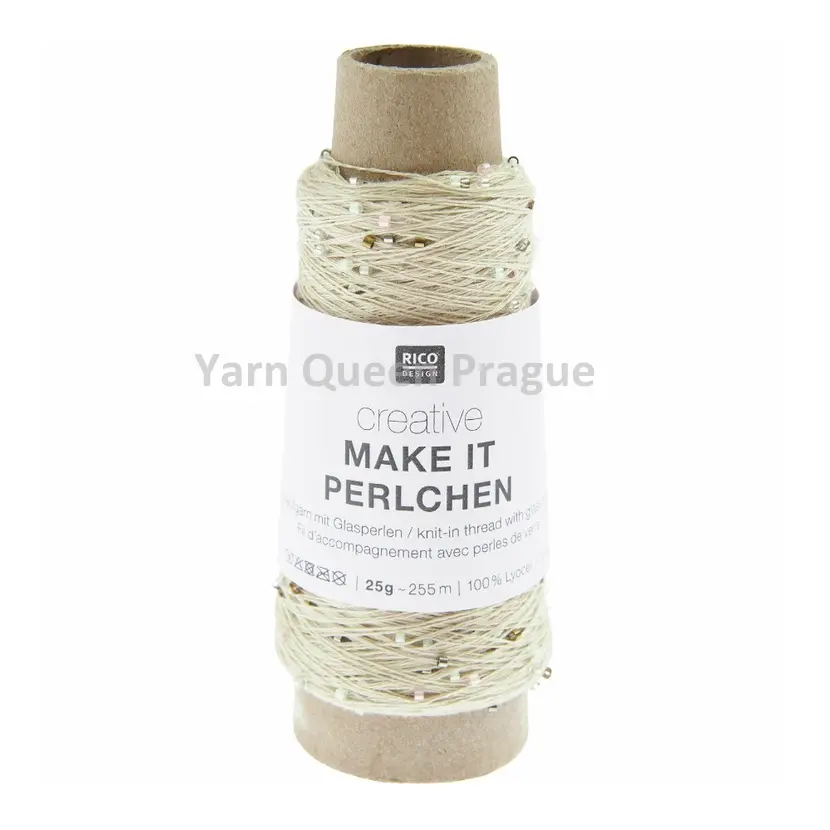 Creative Make It Perlchen je lesklá doplňková příze, která se nepoužívá samostatně, ale přidává se k jiné přízi během pletení či háčkování. Její hlavním účelem je dodat projektu elegantní a stylový vzhled díky drobným třpytivým korálkům.