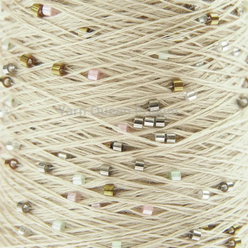 Dekorativní efekt: Příze je ozdobena skleněnými korálky, které jsou barevně sladěné s nosným vláknem.