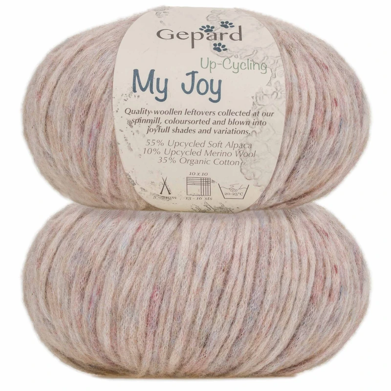 Příze My Joy Up-Cycling od Gepard Garn je ekologickou sestrou příze My Joy. Vyrábí se z odpadních vláken, která zbydou z výroby jiných přízí a která by se jinak vyhodila. Tato vlákna alpaky a merina…