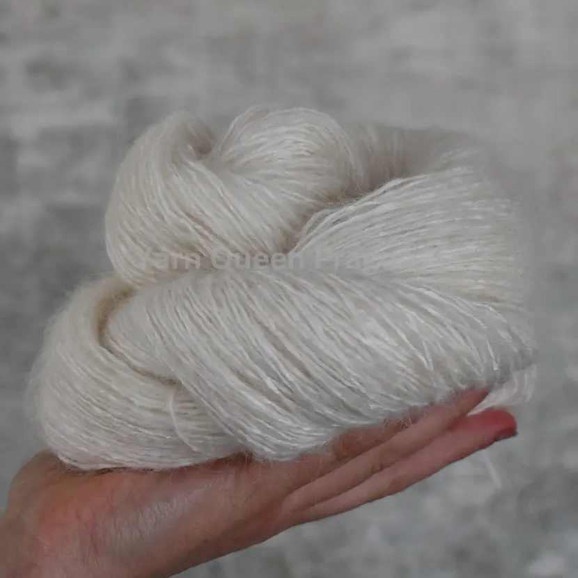 Tato jedinečná příze vznikla stočením dvou pramenů z odlišných vláken - jedním je kartáčovaná nadýchaná směs alpaky, merina a tenclu, a druhým pevný papír z dřevní buničiny.