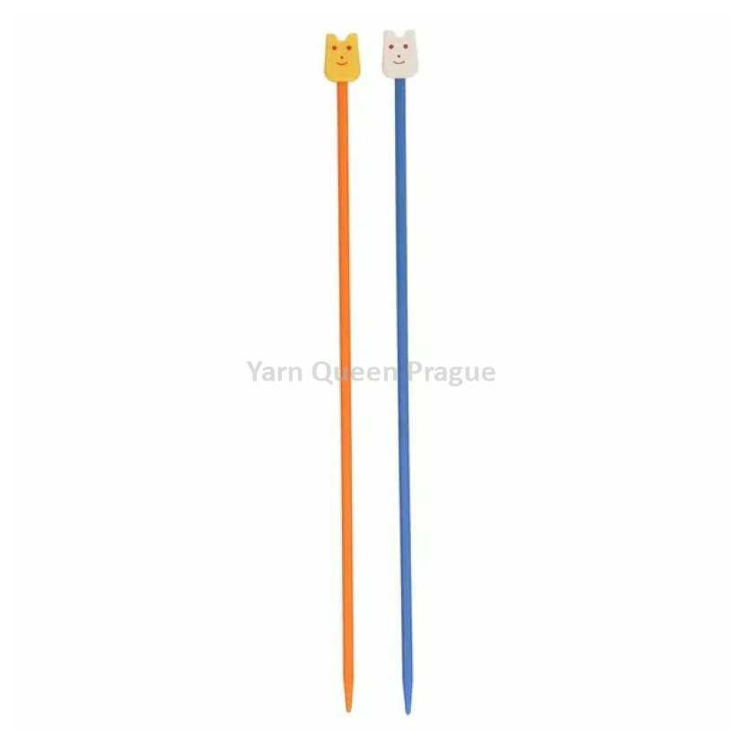 Jehlice pro nejmladší pletaře a pletařky z lehkého plastu ve veselých barvách. Pro ještě větší zábavu mají roztomilou koncovku s obličejem a oušky.
