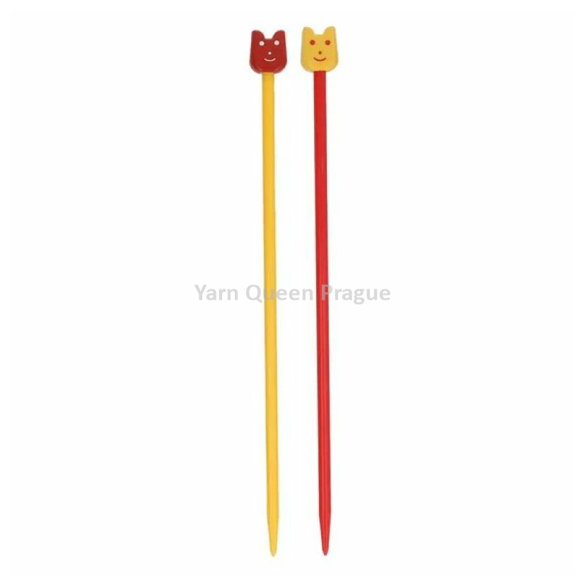 Jehlice pro nejmladší pletaře a pletařky z lehkého plastu ve veselých barvách. Pro ještě větší zábavu mají roztomilou koncovku s obličejem a oušky.