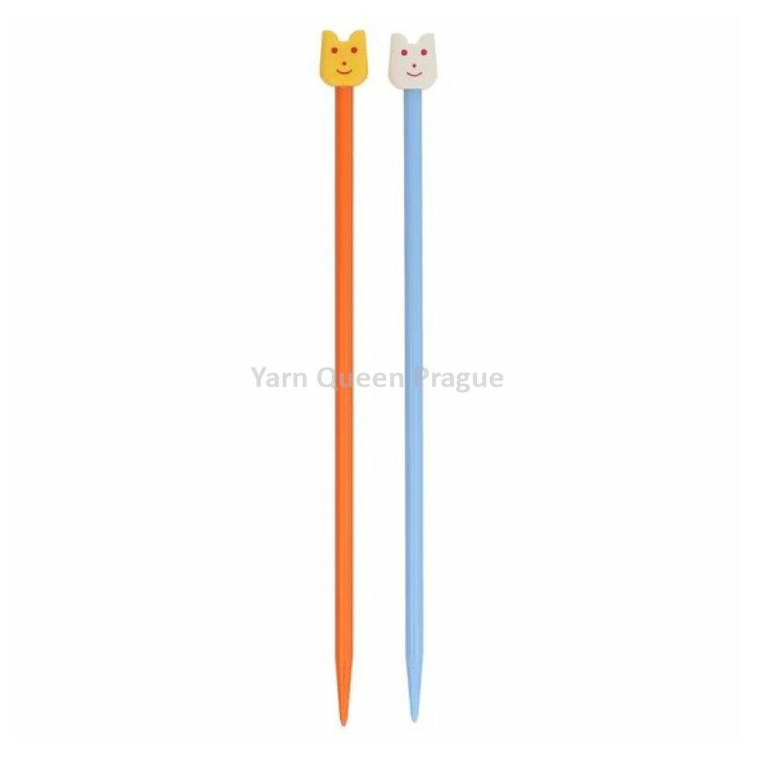 Jehlice pro nejmladší pletaře a pletařky z lehkého plastu ve veselých barvách. Pro ještě větší zábavu mají roztomilou koncovku s obličejem a oušky.