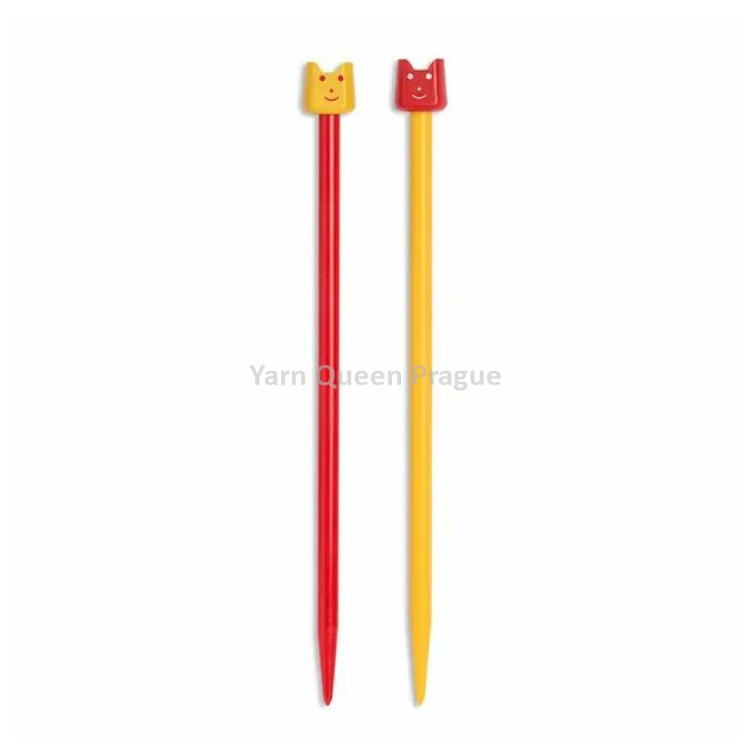 Jehlice pro nejmladší pletaře a pletařky z lehkého plastu ve veselých barvách. Pro ještě větší zábavu mají roztomilou koncovku s obličejem a oušky.