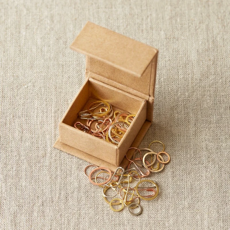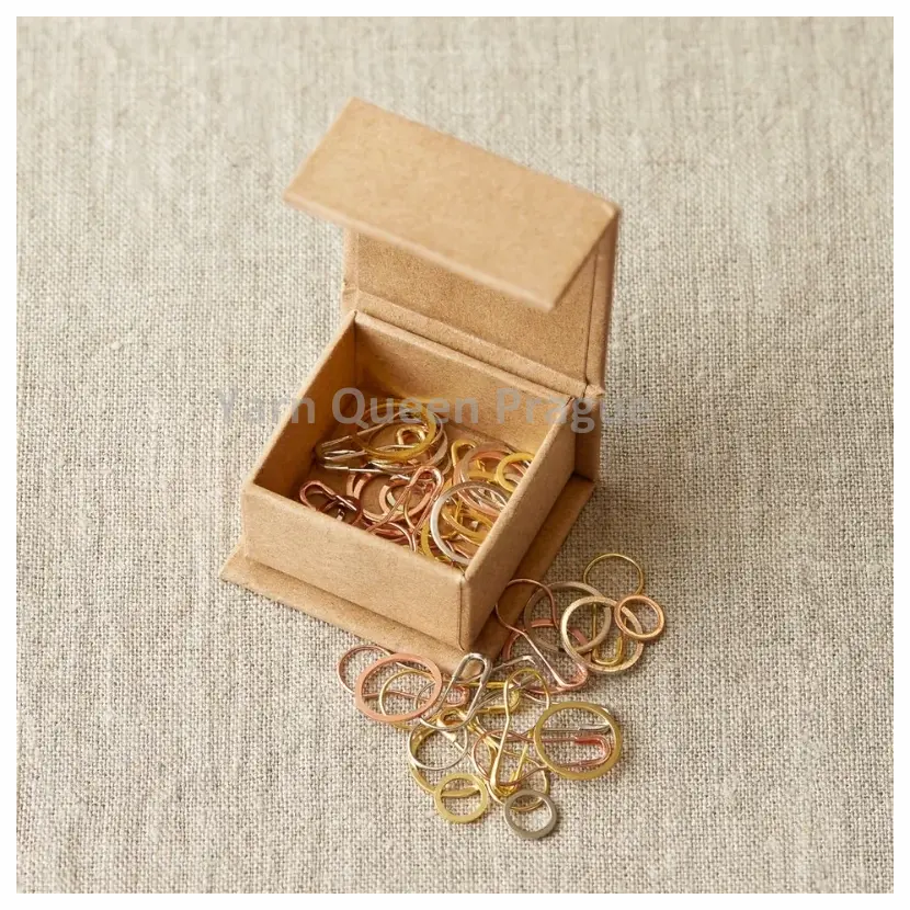 CocoKnits značkovače - zahrnuto je 6 kusů od každé ze tří velikostí, v každé ze tří povrchových úprav, celkem 54 značek.