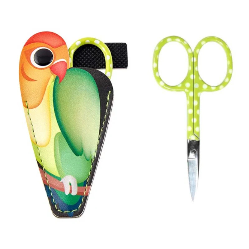 SEW TASTY nůžky v pouzdře s motivem papouška (zelené)